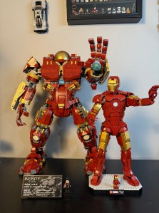 LEGO Iron Man Mark 3 next to LEGO Hulkbuster Mark 44